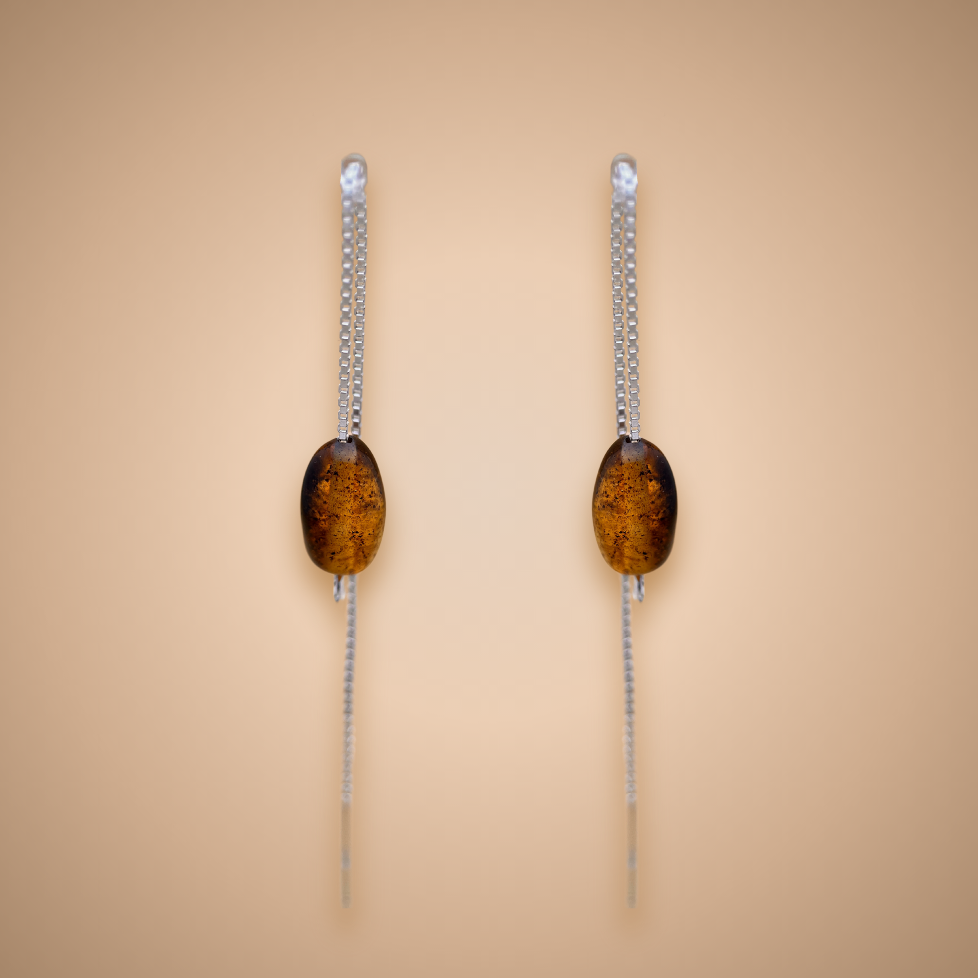 Elegante gennemtrækkelige øreringe med en fin 100 mm sølvkæde , der trænger jævnt gennem øret, så du kan justere længden til dit foretrukne look - typisk båret ved 40-50 mm. Den lange, minimalistiske kæde skaber en flydende silhuet, der bevæger sig yndefuldt med hvert skridt.