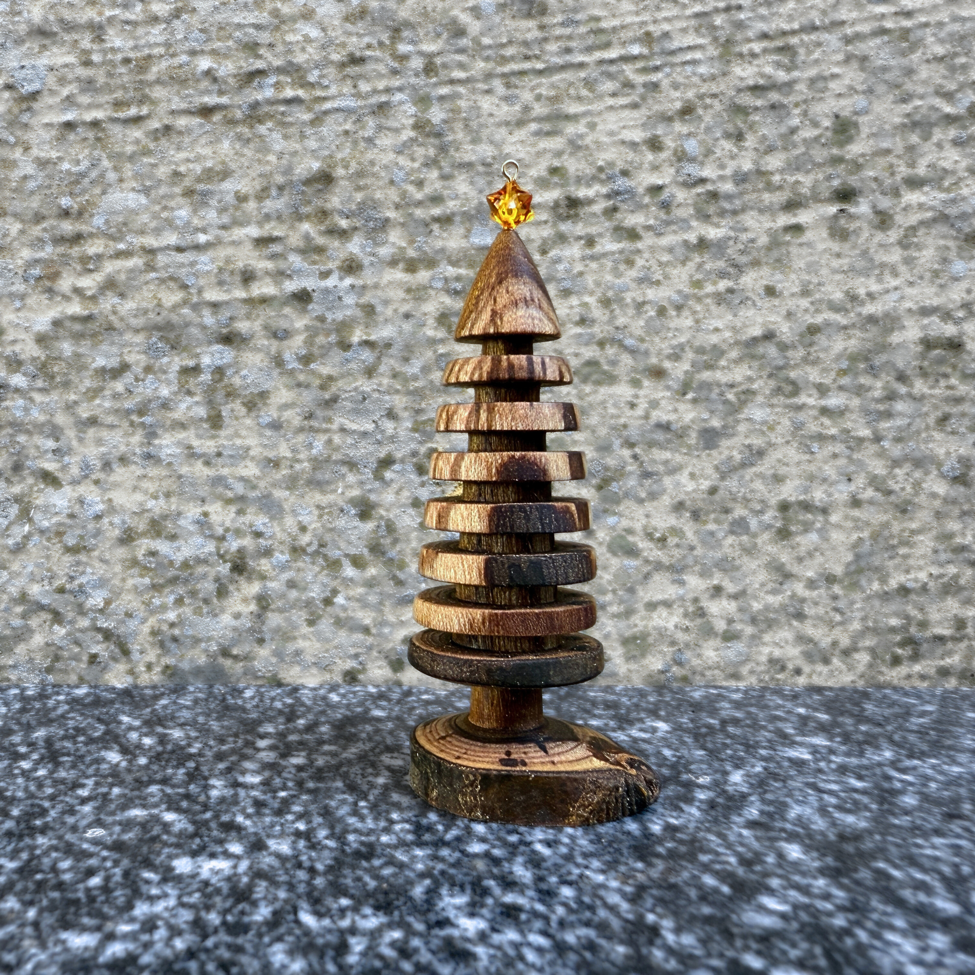 De små træer måler mellem 8,5 og 12,3 cm og er skabt med en ravstjerne på toppen samt en løkke, så de både kan stå frit på deres fod eller hænge i juletræet.