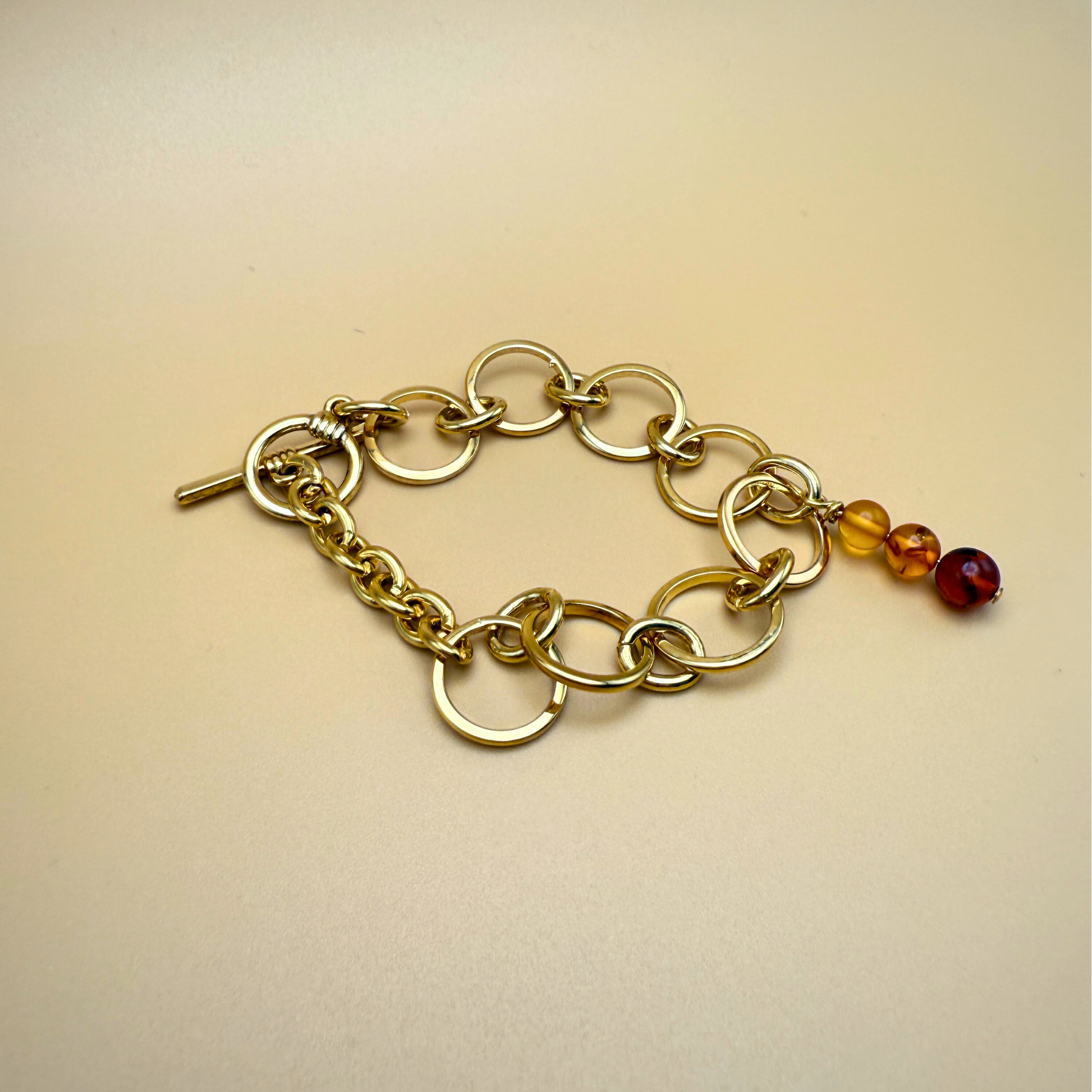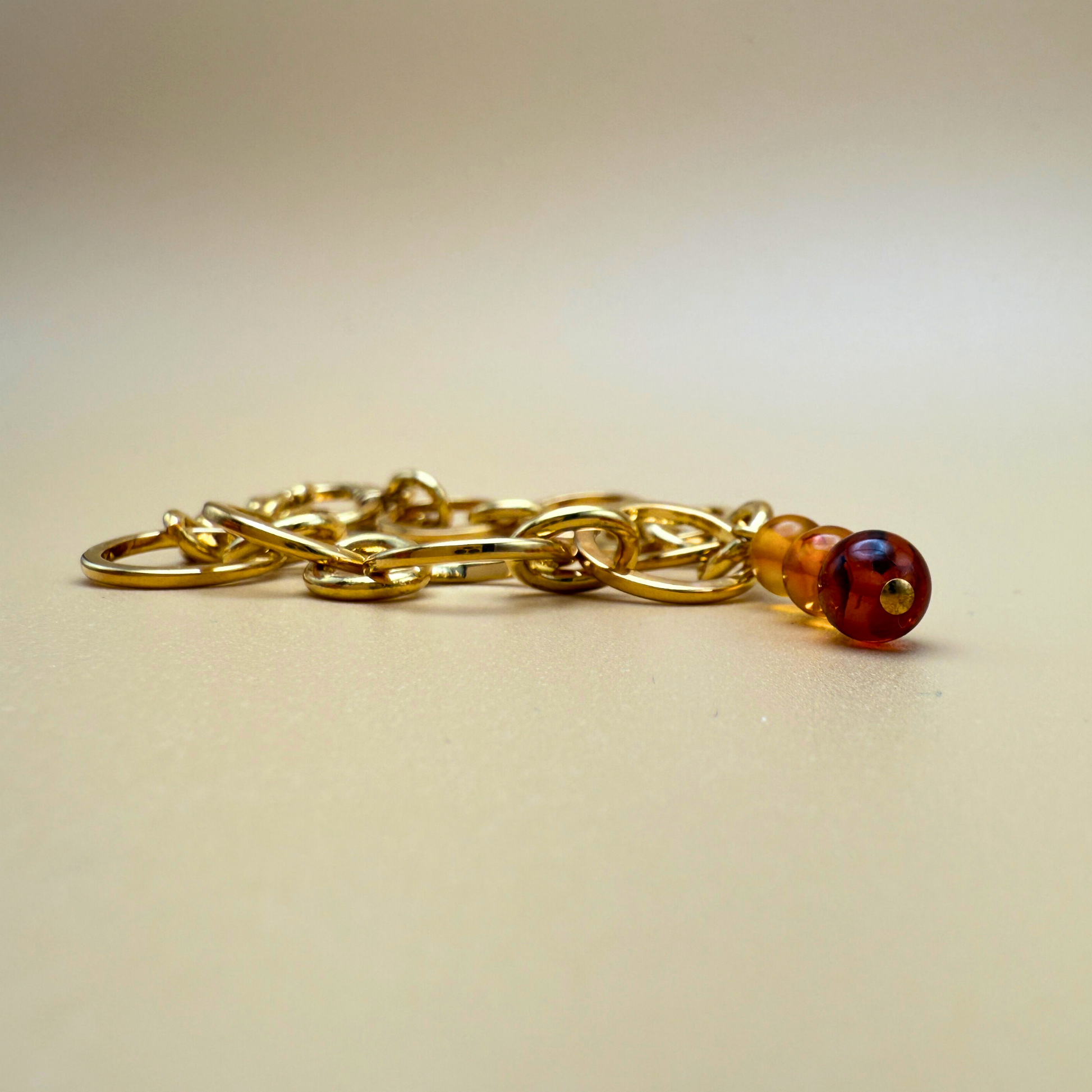 Dette rav armbånd er en strikkefisk, som gør det nemt og overskueligt at holde styr på dine omgange eller pinde. Hver ring repræsenterer én omgang. Når du strikker rundt, starter du med at sætte den første ring på pinden. Når du er færdig med omgangen, flytter du til den næste ring i rækken – og fortsætter sådan.