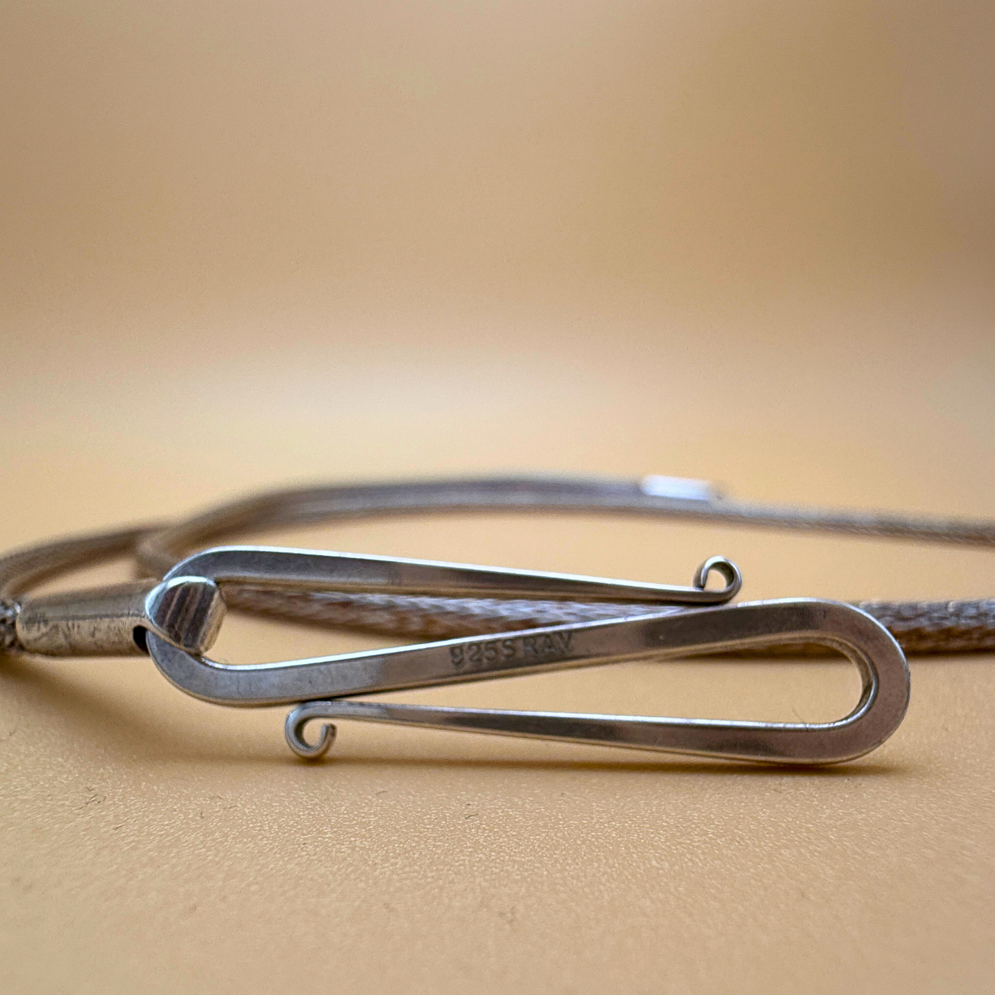 Låsen er lavet af 925 sterlingsølv og har en håndformet S-hage og rør – en sikker og tidløs løsning, der er fremstillet med omhu.