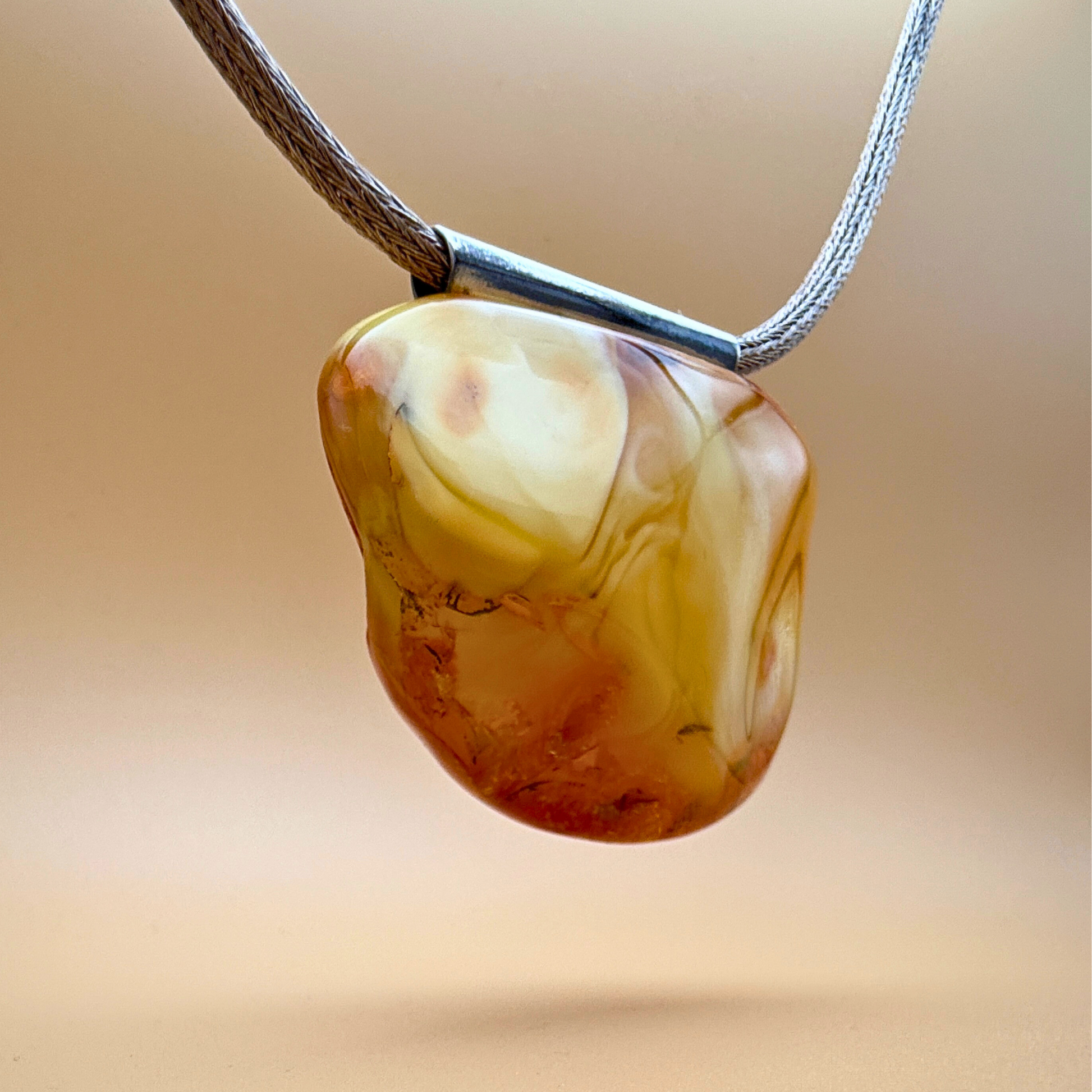 Med en længde på 64 cm og en vægt på ca. 30 g inkl. lås er dette vores længste version – et flot match til større ravvedhæng eller statement-smykker med hånddrejede bøjler eller brede åbninger.