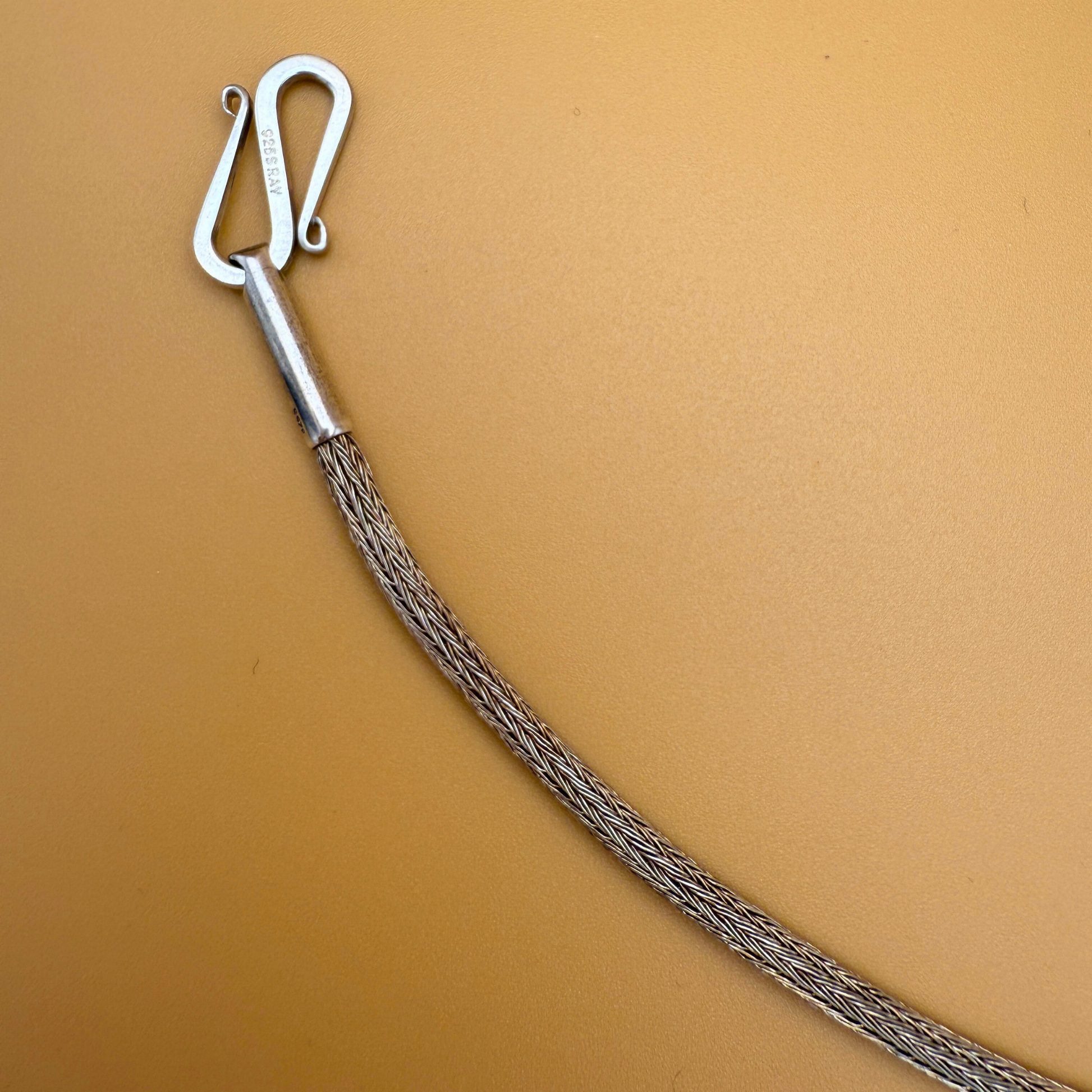 Du kan lære mere om håndstrikketeknikken bag dette design i vores blogindlæg om håndlavede sølvkæder.