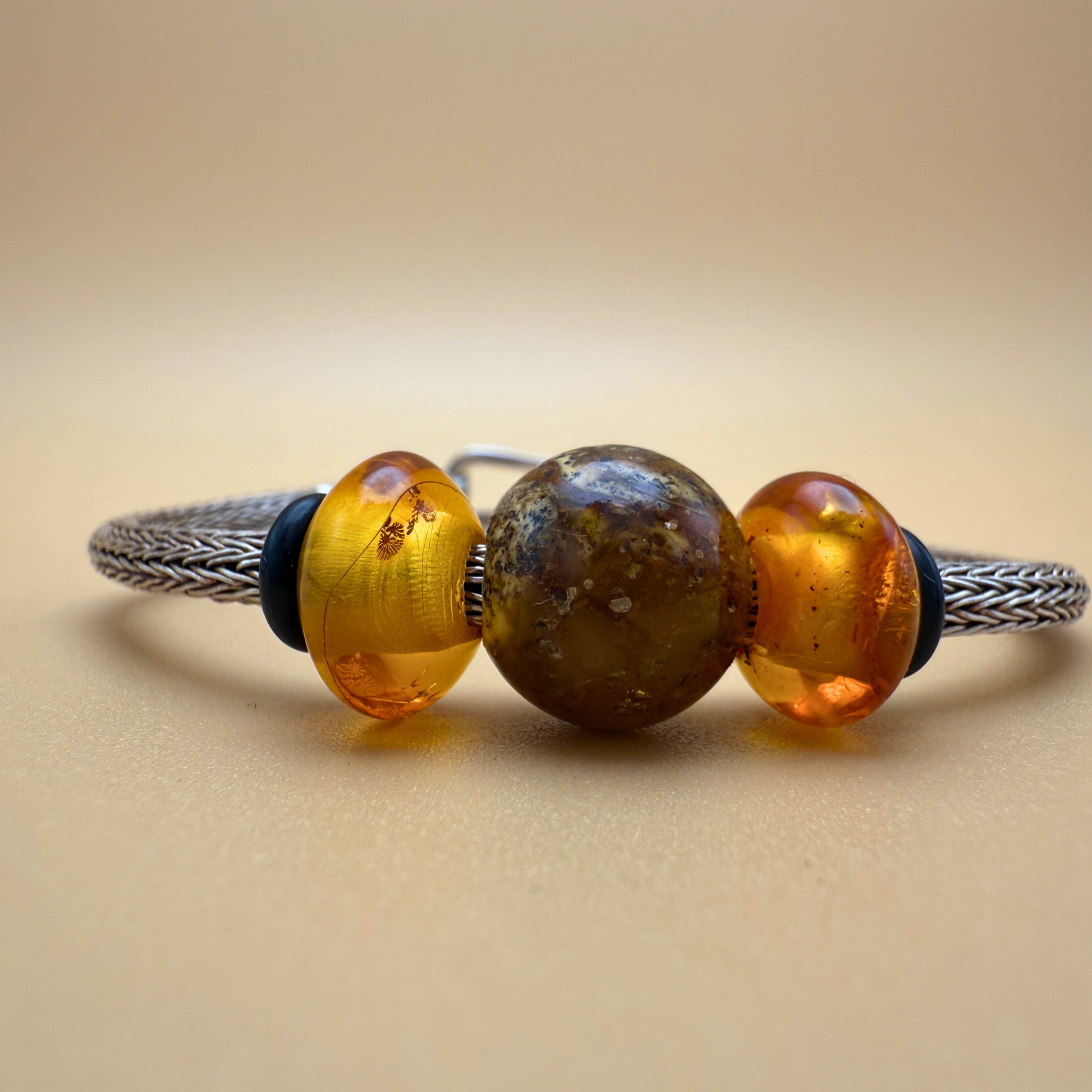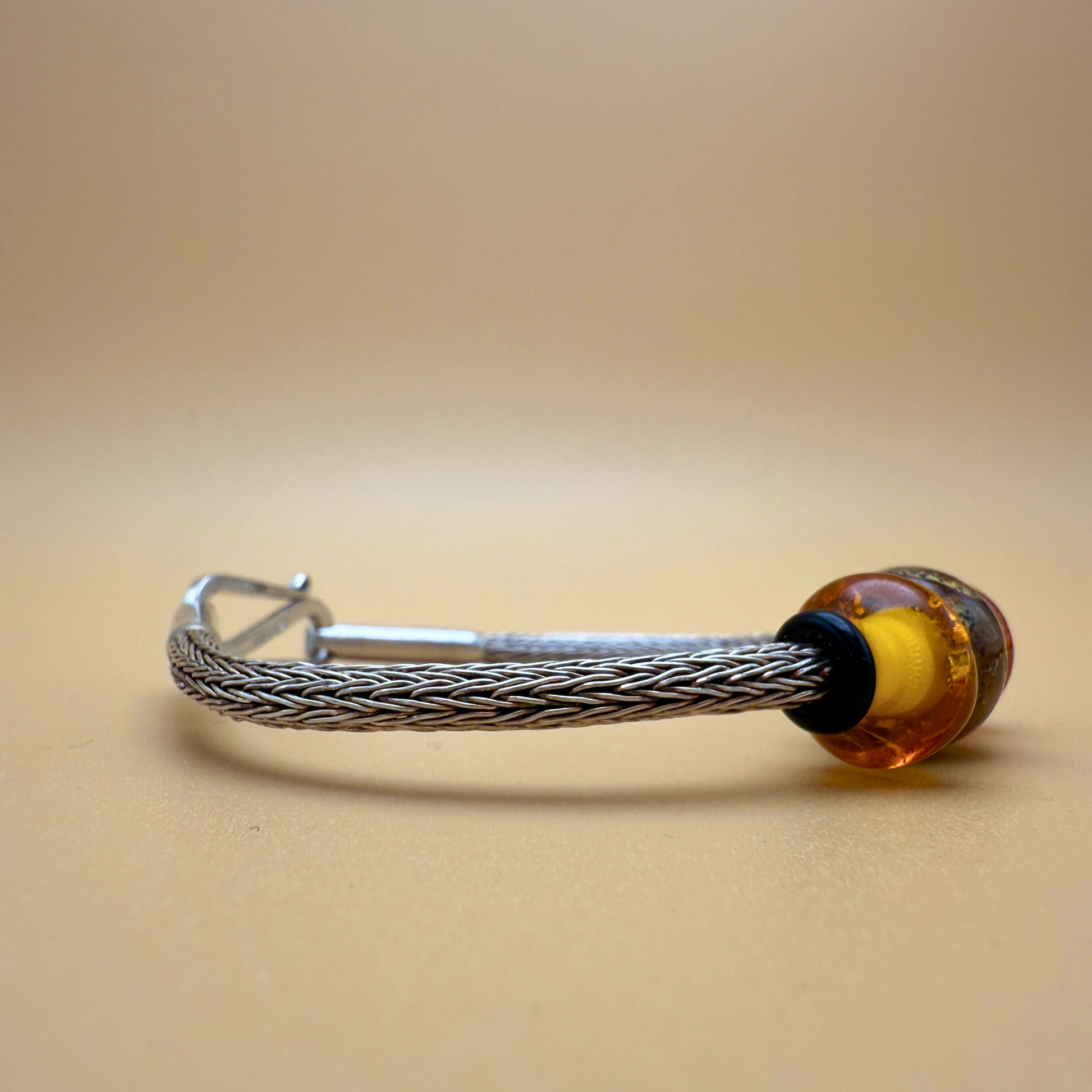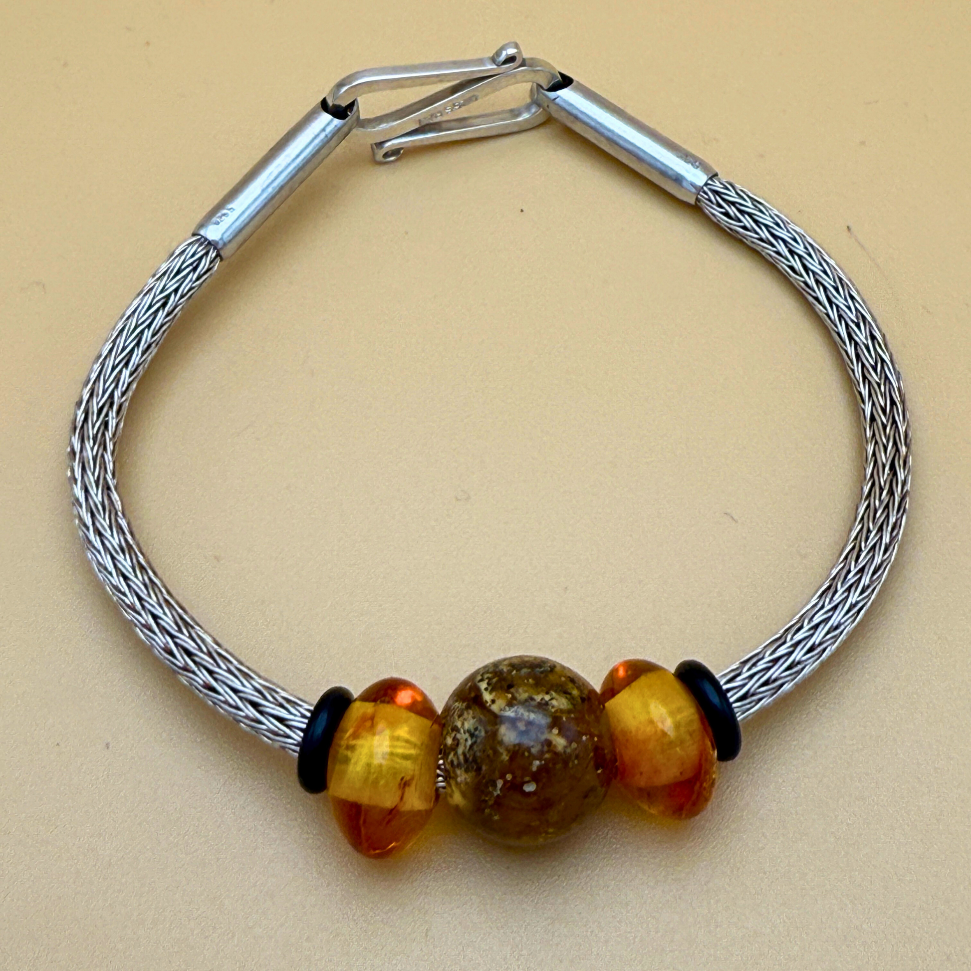 Hvert armbånd er håndlavet på Ravgården, hvor tradition og omhu kombineres i hver eneste løkke. Det passer perfekt med større ravperler eller bæres alene for et diskret og selvsikkert look. (Ravperler sælges separat).