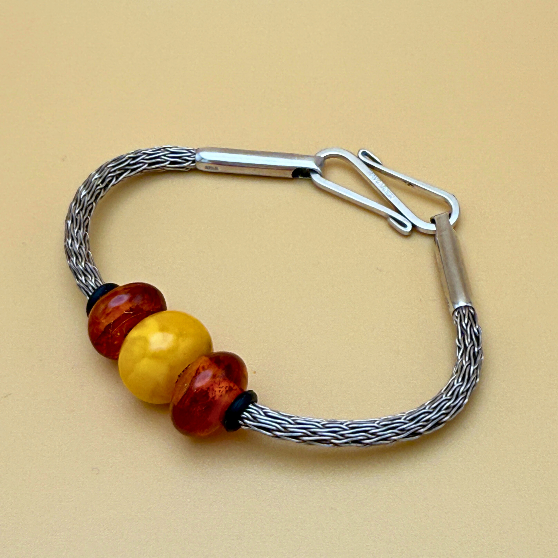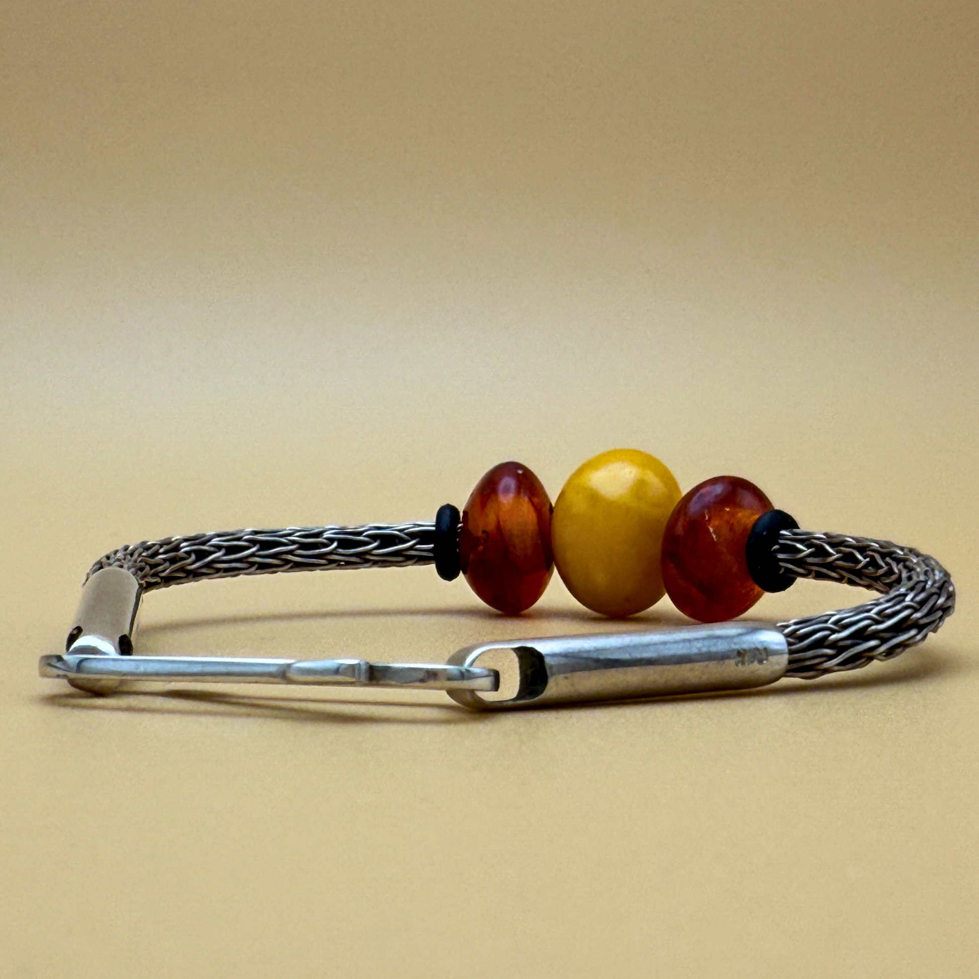Hvert armbånd er håndlavet på Ravgården med omhu og præcision – en kombination af traditionelt håndværk og et rent, moderne look. Det passer smukt sammen med rå eller polerede ravperler eller kan bæres alene for et mere minimalistisk udtryk. (Ravperler sælges separat).