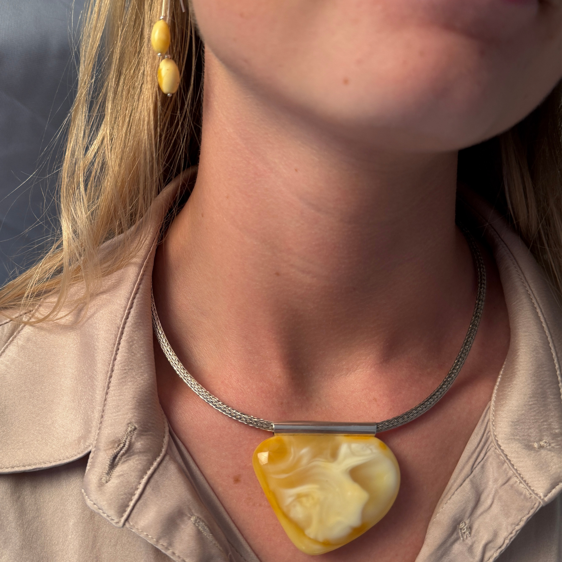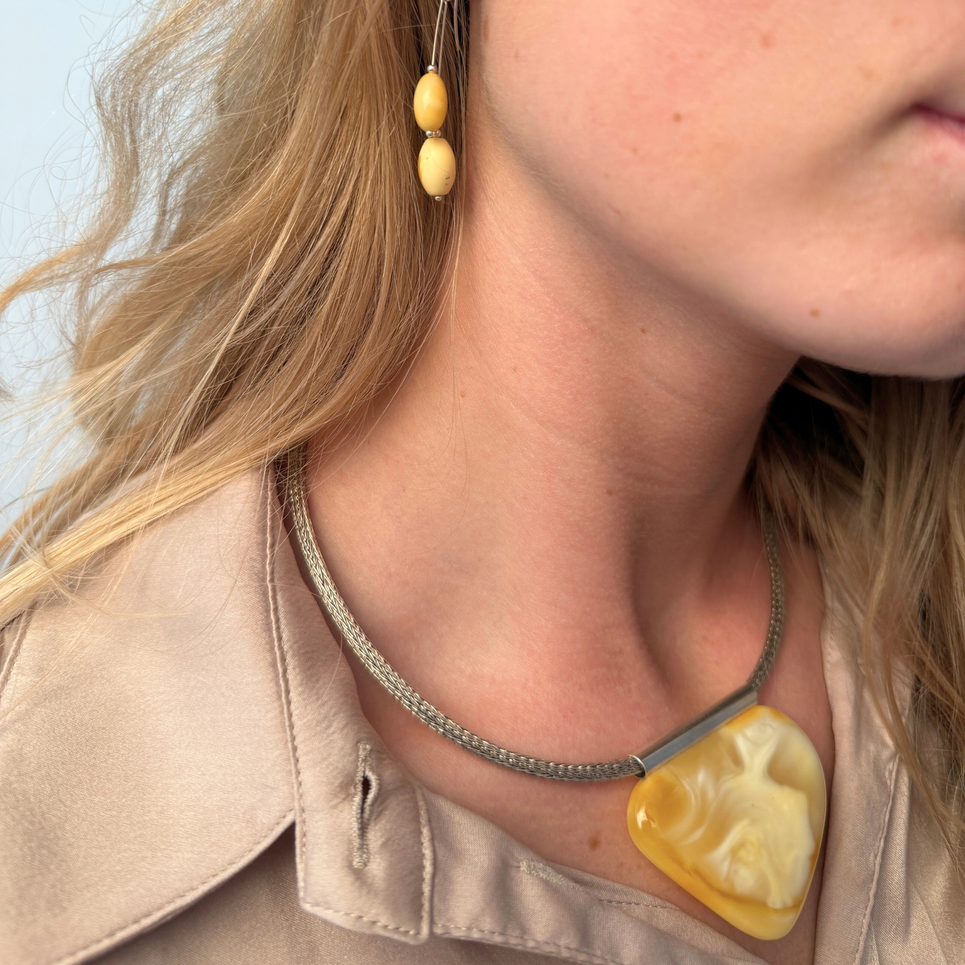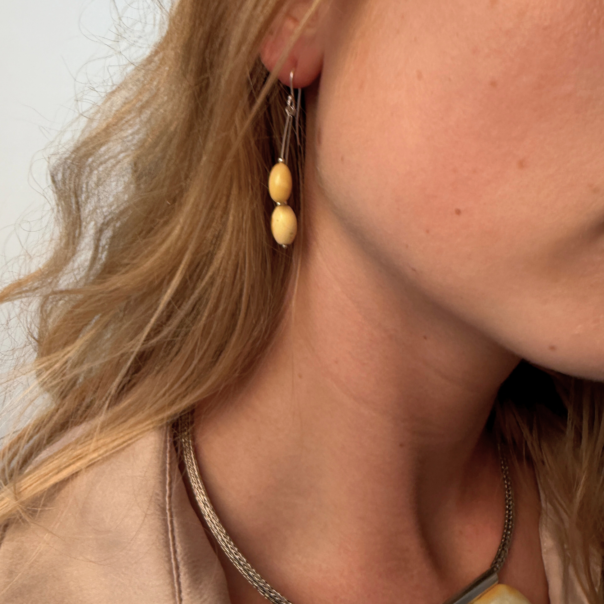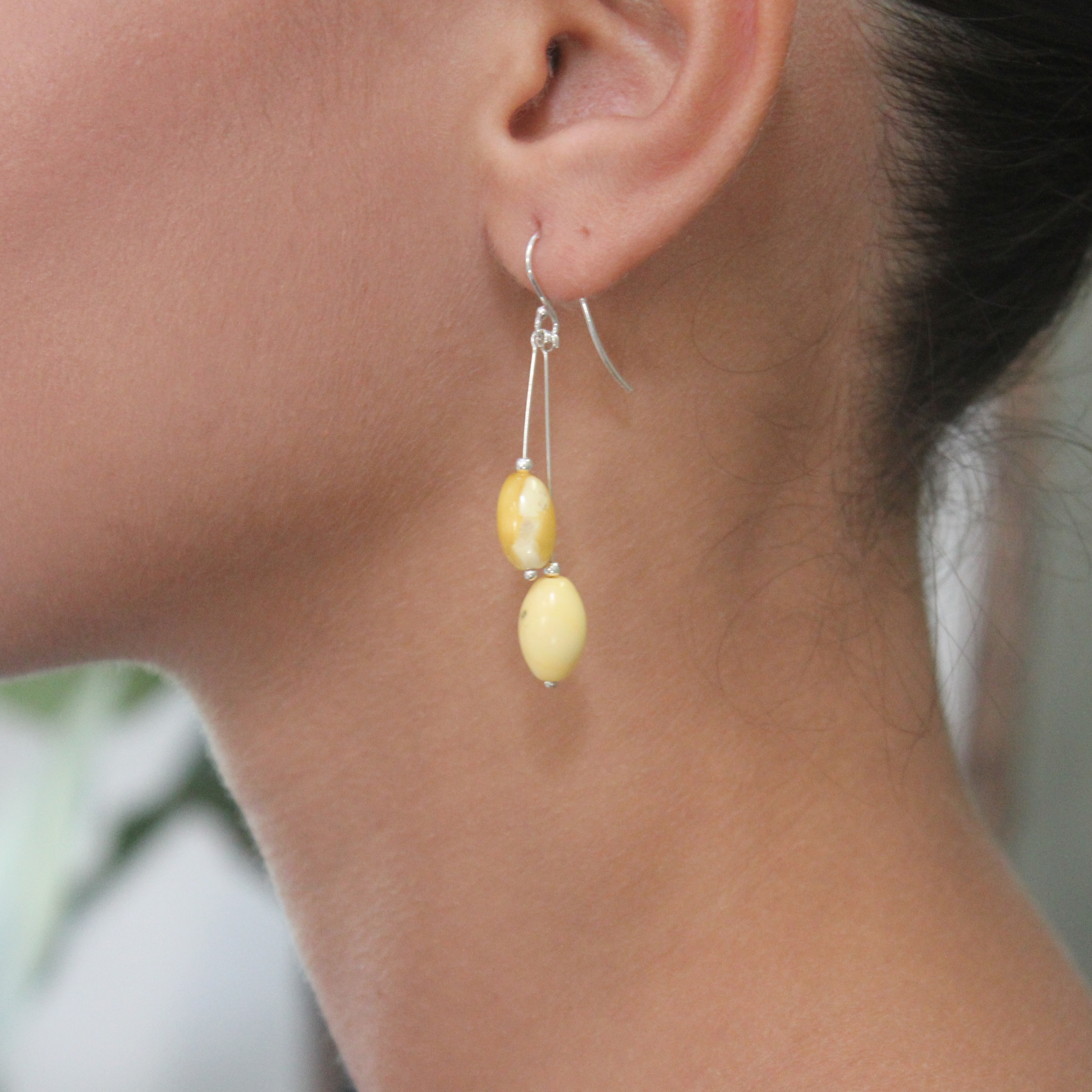 Italy 2 er et tidløst Ravgården-design med to elegante sterlingsølvstænger på hver ørering, der hver har en oval mælkehvid ravperle i spidsen. Designet skaber et rent, skulpturelt udtryk med blid bevægelse og dybde. De lysegule/hvide toner i ravet giver en naturlig rigdom.