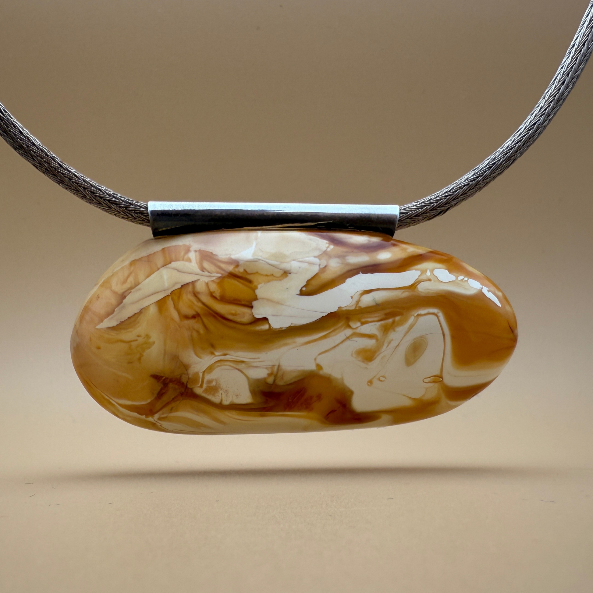 Et rør i massivt 925 sterlingsølv erstatter det traditionelle øsken, så den kan glide på kæder op til 4,9 mm i diameter . Dette vedhæng er virkelig unikt – et naturligt kunstværk formet af tid og håndværk.