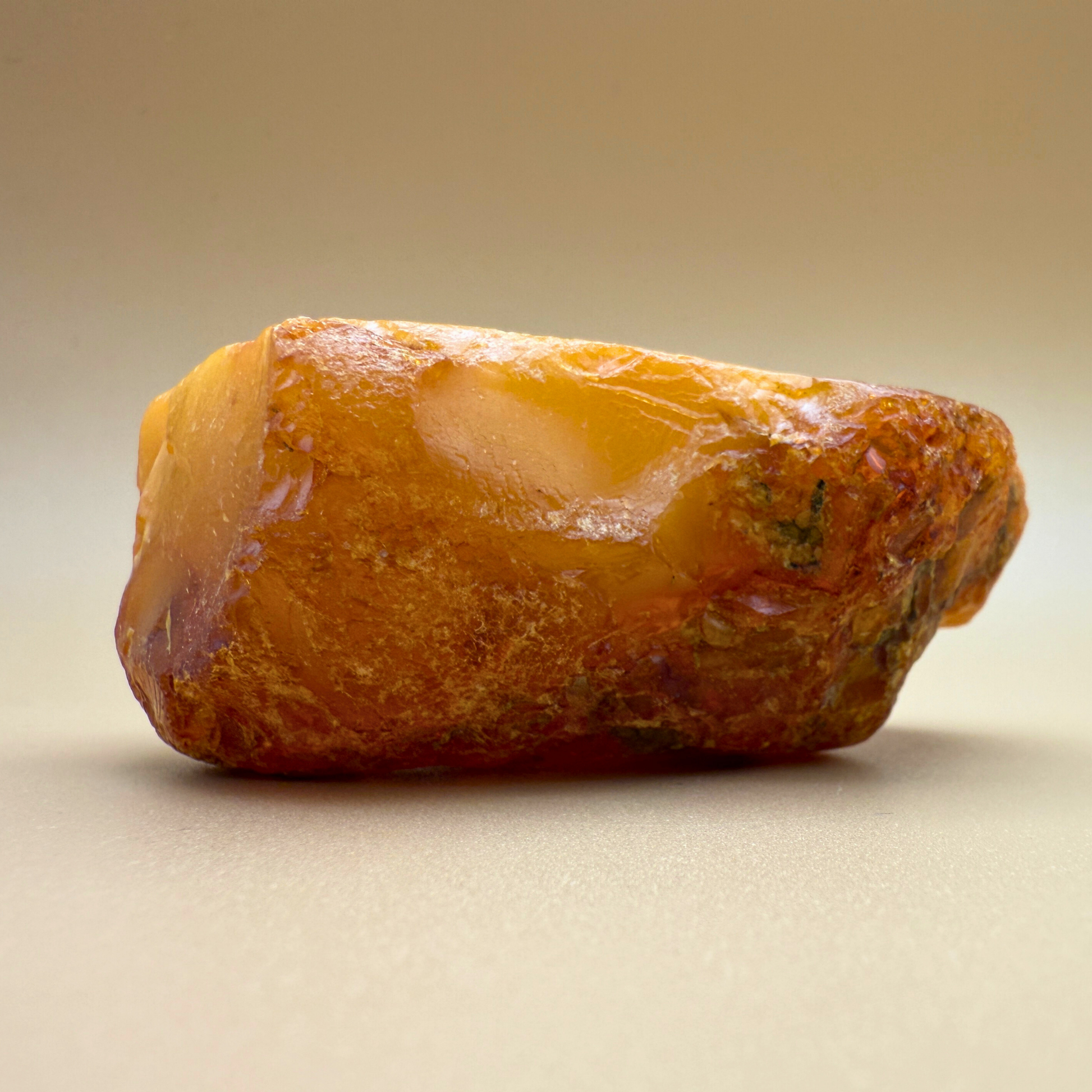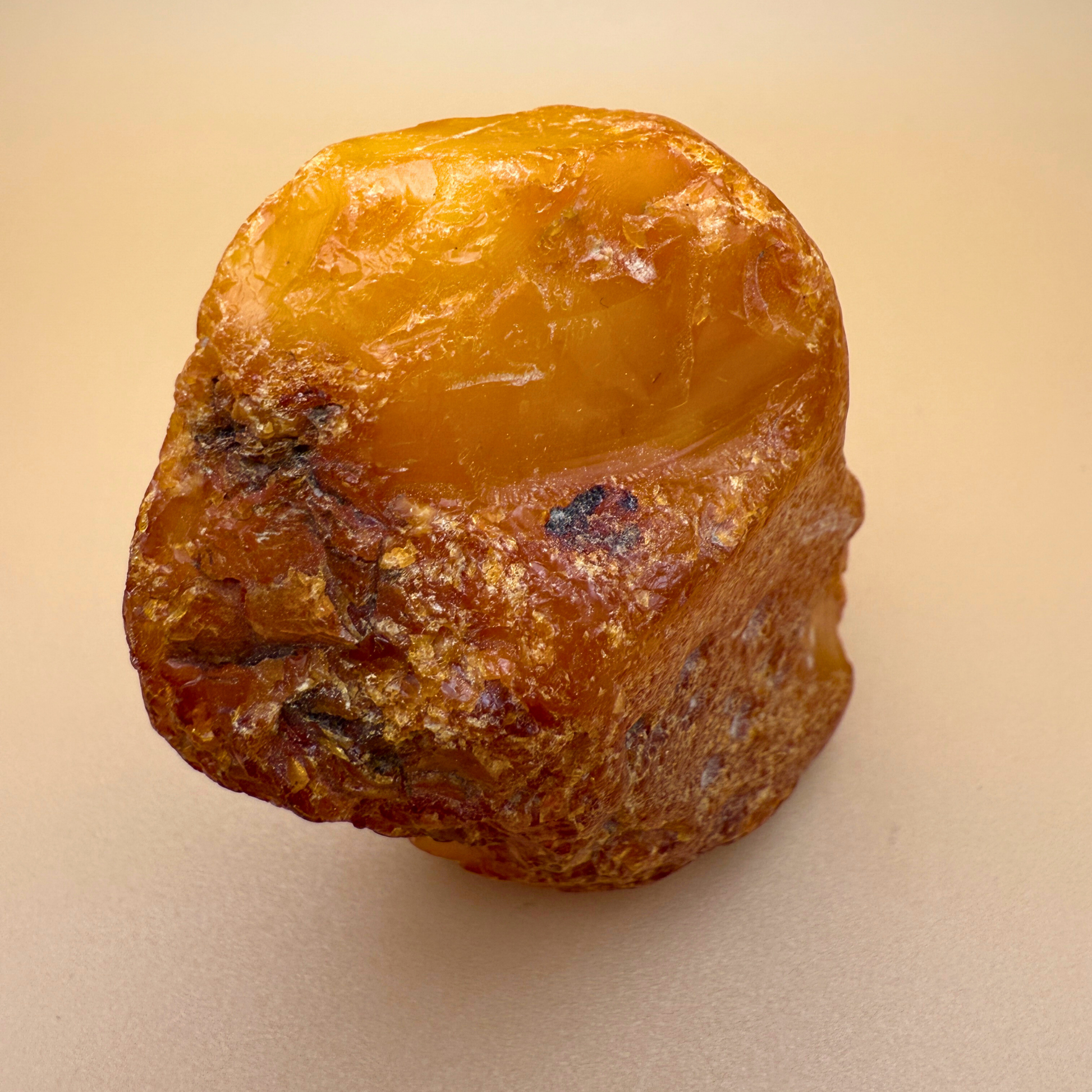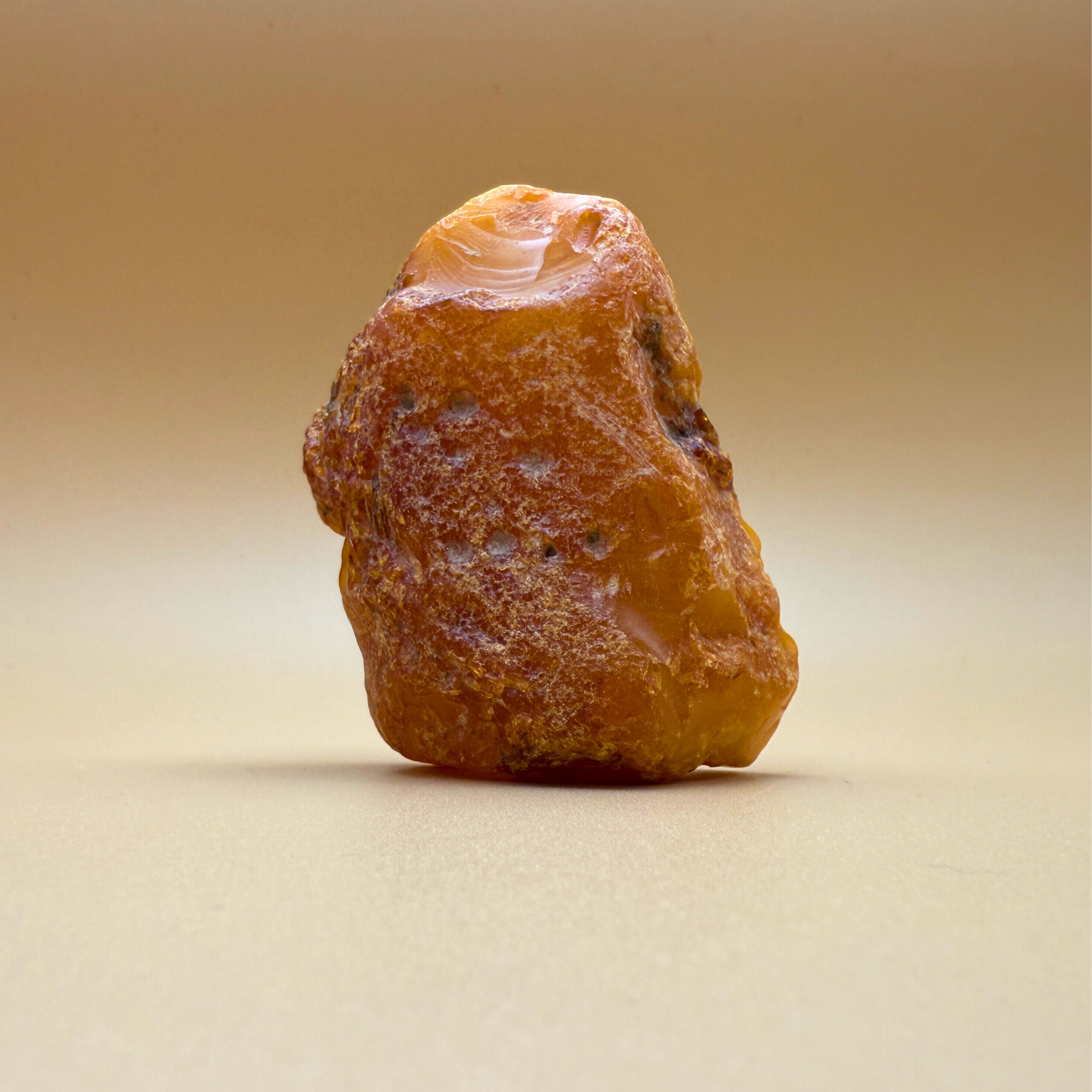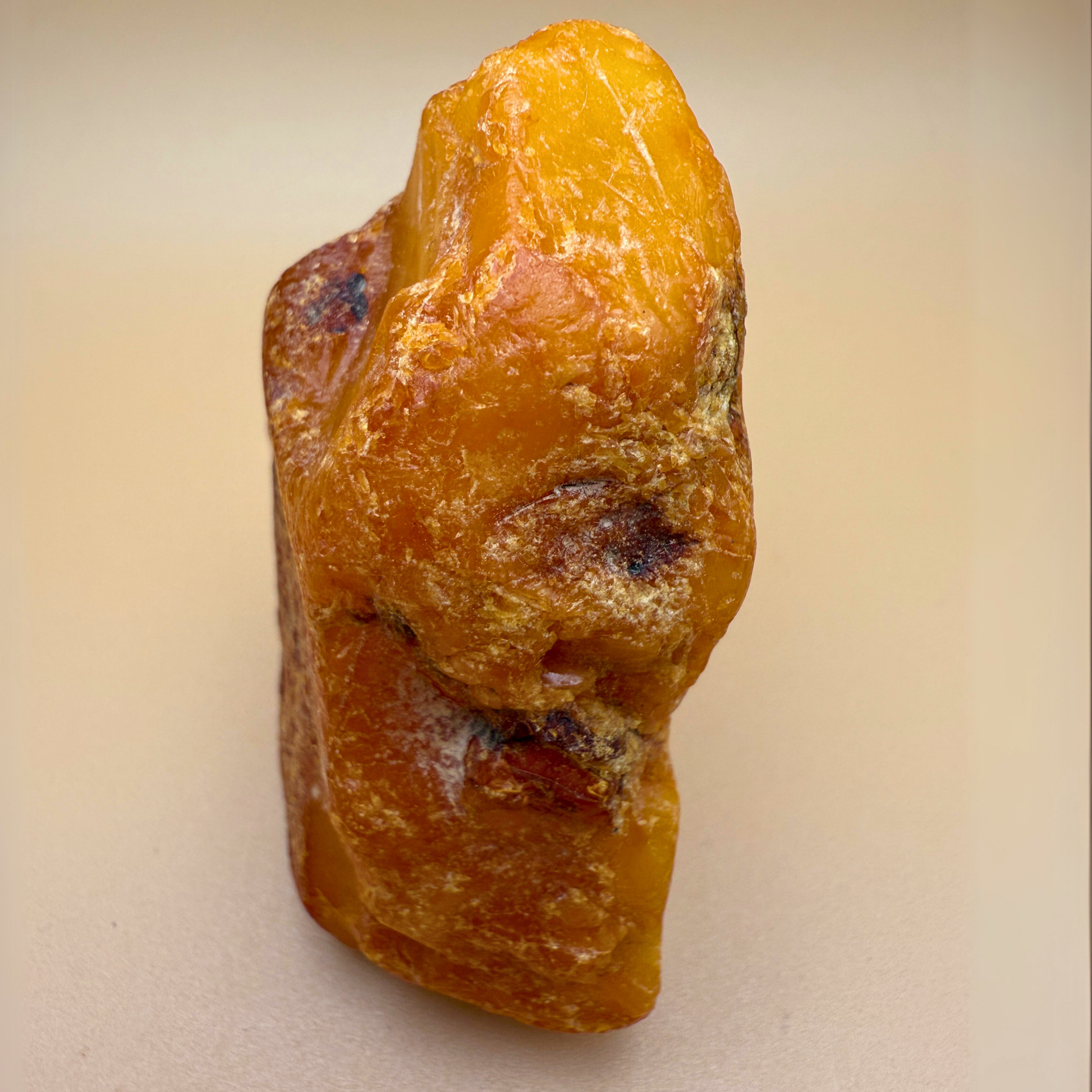 Denne 61 gram tunge rå danske ravskulptur er en lille skulptur formet af havet og tiden. Den er fisket i danske farvande og har to skarpt brækkede sider – sandsynligvis brækket af for århundreder siden – hvilket gør, at den kan stå smukt på flere måder.
