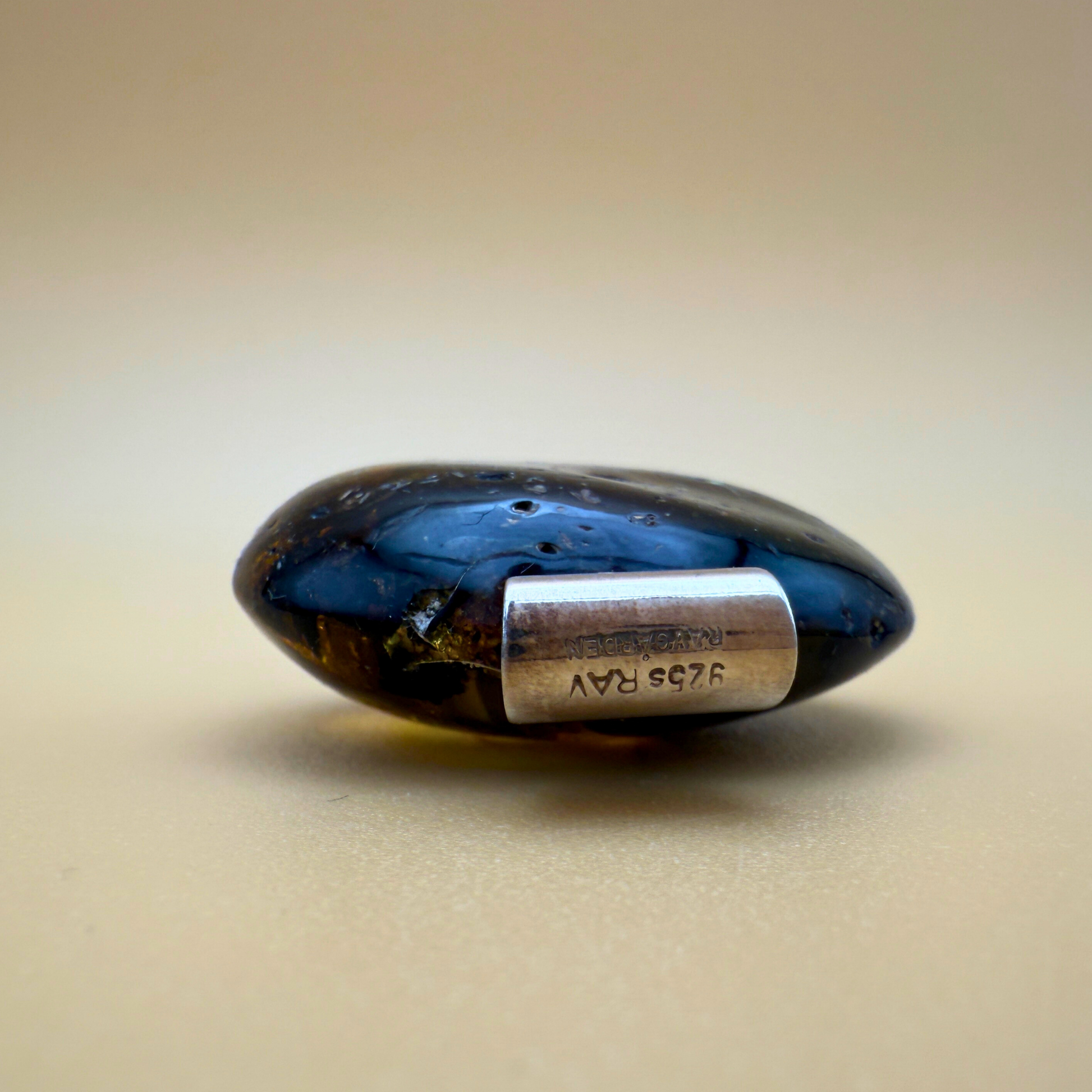 Vedhænget har et massivt rør i 925 sterlingsølv, som passer til kæder med en diameter på op til 4,9 mm, og giver et glat, moderne udtryk der komplementerer ravets rå skønhed.
