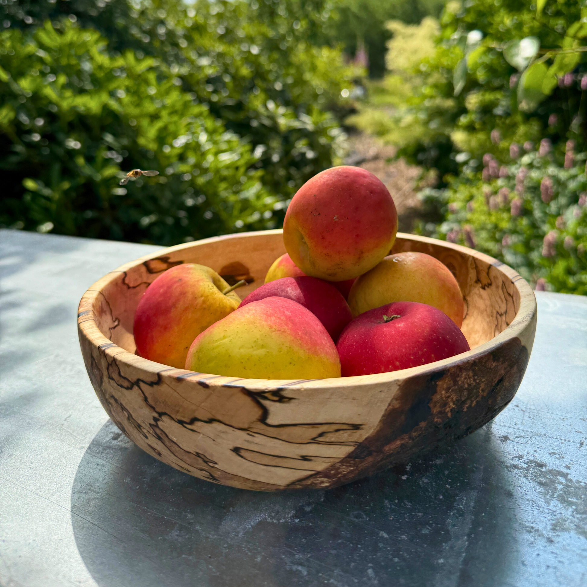 Denne unikke skål er håndlavet i vores værksted på Ravgården i Sønderlev af Erik Ravgård, lavet af lokalt fremskaffet birketræ fældet lige uden for Hjørring i Nordjylland.